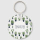 Rustic Dark Green Cactus Desert Pattern Key Ring