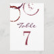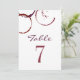 Chic rustic modern red wine glass stain table number card design includes custom text for the table number. Customise and add each individual table number / card to your shopping cart to order.