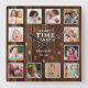 Rustic Dark Wood 12 Photo Collage Family Time Square Wall Clock
