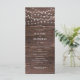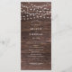 Rustic dark wood background and festive string lights wedding program. See full collection link directly under main image.