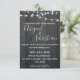 On trend, Rustic Dark Wood, with String Lights, Wedding invitations. Customise with your own Wedding day details! Add in the Bride and Grooms name, Date, Time, Place and what comes after the ceremony.