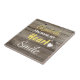 Rustic dark wood yellow with quote and name ceramic tile