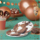 Rustic dark wood grain planks design paper plates with a white world map silhouette! Good for a rustic travel themed wedding or any party!