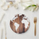 Rustic Dark Wooden Planks & White World Map Paper Plate