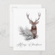 Exquisite watercolor deer with antlers, pine cones, pine boughs, and eucalyptus in trendy tones of rusty brown, silver, and grey. Personalise with your own greeting on the back.