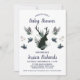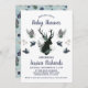 Rustic Deer Head Blue Floral Modern Baby Shower Invitation