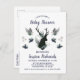 Rustic Deer Head Blue Floral Modern Baby Shower Invitation Postcard