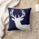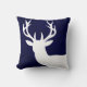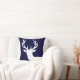 Rustic Deer Head Silhouette on Burlap | navy white Cushion