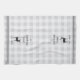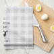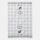 Customise your kitchen with this cute personalised towel featuring your family name or house name and year established in rich charcoal grey lettering accented with a deer illustration on a tonal plaid background.
