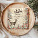 A woodland Christmas party design featuring a rustic deer among pine branches and red berries. The vintage style and earthy winter tones create a cosy, festive atmosphere, perfect for a woodland or cabin-themed holiday gathering.