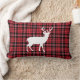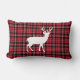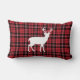 Rustic Deer Red And Black Plaid Pattern Lumbar Pillow.