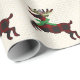 Rustic, plaid red deer pattern with boho pine cones and pine needles in antler with a green ribbon around neck. Gold script word "fa la la" background.