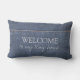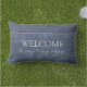 Rustic denim blue pattern Welcome to my tiny home Lumbar Cushion