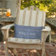 Rustic faux denim blue Welcome to my tiny home Lumbar outdoor Pillow.