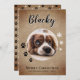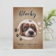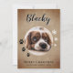 Rustic Dog Name Photo Merry Christmas Family Holiday Card. The background is rustic beige with white snowflakes and black paw prints. Personalise the card with your dog`s photo, family name and year. You can use this custom card for any pet. A lovely holiday card for a dog owner.