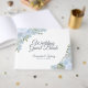 This elegant guest book will serve as a special memento of your wedding day. It features a beautiful hand painted boho chic design with watercolor roses, blossoms, and eucalyptus leaves in shades of dusty blue and sage green. The lettering is done in an elegant script font with space for the names of the couple and wedding date. Perfect way to create lasting memories of your special day!