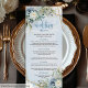 Rustic Dusty Blue Floral Gold Glitter Wedding Menu