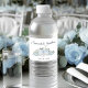 These water bottle labels will make your wedding celebration all the more special. They feature a design that is simple yet elegant with a cluster of watercolor roses, blossoms, and greenery in shades of dusty blue and sage green. There is script lettering for the wedding couple's names and a place to enter the wedding date.