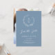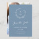 This elegant wedding save the date features a beautiful dusty blue colour background, hand-drawn wildflower wreath, your initials, and elegant typography. On the back is your photo in vertical format. The photo on the back is removable if needed. It's a perfect design for a rustic yet elegant wedding! See the collection for more items!