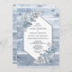 Rustic Dusty Blue Wood Botanical Wedding Invitation