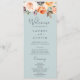 This rustic earth florals mint wedding program is perfect for a fall wedding. The elegant earth tone design features rustic watercolor flowers in terracotta, copper, burnt orange, peach, blush pink and cream white tones with vintage boho style. Include the name of the bride and groom, the wedding date and location, thank you message, order of service, bridal party and an optional "in loving memory" memorial.