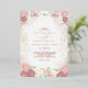 Perfect for a fall wedding, this all-in-one invitation features a stunning earthy palette with rustic watercolor florals in terracotta, copper, burnt orange, peach, blush pink, and cream. The vintage boho design is elegantly accented with luxurious rose gold foil text on the front. Save paper by including wedding details on the back instead of a separate enclosure card, with the option to add RSVP information for electronic replies. A stylish and sustainable choice for your special day.