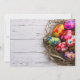 This elegant holidays design features colourful painted Easter eggs in a bird's nest on rustic white wooden boards. Personalise by editing the text in the text boxes for your custom Easter brunch or lunch invites.