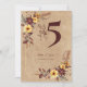 Guide your guests to their seats in style with this rustic table number card, featuring a kraft paper-inspired background and autumn florals in yellow and burgundy. The bold number and elegant calligraphy are easy to read from a distance, while the personalised details at the bottom add a refined touch. A perfect addition to your fall or barn wedding tablescape.