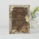 Rustic brown background with white roses and gold wedding rings. This beautiful wedding RSVP/response card is all ready to be personalised for your special wedding day. Personalise the card by changing the text in the fields provided front and back. You can change font style, size, and colour, as well as paper type and style.