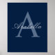 Rustic Elegant Blue Personalised Monogram Name Poster