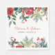 Wedding reception personalised paper napkin featuring rustic modern watercolor Christmas traditional botanical borders with holly berries, red and ivory flowers, pine cone, fir boughs, seasonal foliage, and red typography script.++++++++++++ Ideal for your winter, Christmas floral, elegant rustic themed weddings. +++++++++++++ Personalise it with the bride's and groom's names and wedding details!