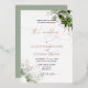 Envision an enchanting botanical-themed wedding invitation that encapsulates the beauty of nature. This invitation is a masterpiece of artistry and elegance. Gracing the top is a breathtaking watercolor greenery bouquet, infusing the design with a touch of organic charm and vitality. Against a pristine white canvas, the invitation exudes a sense of purity and sophistication.