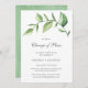 Rustic botanical wedding postponement announcement featuring a simple design with a green watercolor painted sprig with large leaves along with the title, "Change of Plans". The backside has a soft green watercolor wash. This announcement card is a great way to let your guests know that your wedding has been postponed.