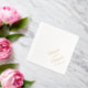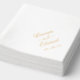 Custom-designed wedding paper napkins featuring simple elegant foil calligraphy design.
