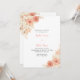 The pristine white canvas sets the stage for the stunning floral border that graces the invitation. A harmonious combination of rustic orange roses, delicate white flowers, and lush greenery creates an elegant yet organic frame. The addition of vibrant orange leaves adds a pop of autumnal warmth, making this invitation particularly fitting for a fall wedding.