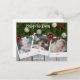 Create your own elegant rustic holiday postcard with this lovely design featuring grey farmhouse wood as background for your family favourite snapshots and your custom greetings, framed with green pines and red and silver ornaments. Merry Christmas in hand-written elegant script and your family name in rustic simple font. The three snapshot pictures are signed: love, joy, peace. The reverse of the postcard also contains your personalised message and address.