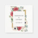 Rustic Elegant Red and Gold Floral White Wedding Table Napkins. Design Features Red Flowers, Anemone and White Flowers with Greenery Elegant Rustic Gold Frame With Adorned Back