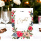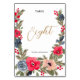 Infuse a touch of winter's enchantment into your wedding tables using our Rustic Elegant Winter Floral Table Number Card. This exquisite design captures the essence of the season, showcasing a hand-painted watercolor frame adorned with a graceful blend of red flowers, soothing dusty blue hues, and verdant green pine branches. It creates a wintery and Christmas-inspired floral arrangement that sets the stage for a truly romantic celebration. The elegant script font contributes a dash of timeless allure, making it a delightful addition to your wedding decor.