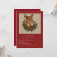 This cosy invitation features a rustic deer accented with holiday greenery, pine branches, and berries, all in embroidery-style on a linen-inspired background. The natural palette of browns, greens, and reds adds festive farmhouse warmth. AI-assisted design enhances the handcrafted look.
