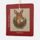 Rustic embroidery Deer & Holiday Greens christmas Ceramic Ornament