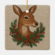 Rustic Deer with Holiday Greens christmas ceramic ornament