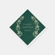 These beautiful paper napkins are perfect for adding beauty and a personal touch to your reception whether it's a casual outdoor backyard gathering, or a more formal dinner. They feature a rustic design with a marbled emerald green background and sprigs of hand painted watercolor leaves in shades of pale olive or sage. There is space for your names and the wedding date inside the wreath of laurel leaves. The design is shifted by 45 degrees so it aligns with a diagonal placement of the napkin.