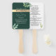 Our emerald green wedding program hand fans blend modern elegance with rustic charm. Adorned with botanical boho watercolor greenery and accented by simple calligraphy script, they provide a stylish and functional touch to your celebration. These fans offer a refreshing way to keep guests cool while showcasing your unique, sophisticated wedding theme.