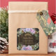 These coordinating square sticker labels feature beautiful purple lilac, lavender flowers, forest greenery, rustic wooden background and twinkling fairy lights.