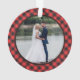 This wedding engagement keepsake Christmas ornament design features space for text and a photo, all on a warm red and black buffalo plaid background, accented with branches and a heart. The collection of coordinating products is available in our shop, zazzle.com/store/doodlelulu. Contact us if you need this design applied to a specific product to create your own unique matching item or gift! Thank you so much for viewing a DoodleLulu by 2 june bugs design!