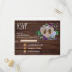 Rustic Engraved Wood Heart Monogram Floral Fall Invitation Postcard
