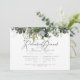 Watercolor flowers rustic blue gum and greenery arrangement with beautiful dark shades of Eucalyptus foliage. Accented with elegant and modern handwritten script Rehearsal Dinner Invitations. DIY background colour.