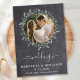 Eucalyptus Greenery Custom QR Code wedding invitation cards on rustic chalkboard slate design . Invite friends and family to your special day, with this simple all in one wedding invitation. These QR Code wedding website invitations are perfect when you would like to keep all wedding info on your website, and no worries about lost rsvp’s. These rustic eucalyptus botanical online wedding invitations are the perfect way to simply your responses to your wedding invitations, make changes to details, dates or the venue its as easy as a few key strokes. As well as keeping guests up to date on details by having easy access to your wedding website. See our Eucalyptus wedding collection for matching wedding thank you cards, and wedding party supplies. COPYRIGHT © 2020 Judy Burrows, Black Dog Art - All Rights Reserved. COPYRIGHT © 2020 Judy Burrows, Black Dog Art - All Rights Reserved. Rustic Eucalyptus Greenery Photo QR Code Wedding Invitation