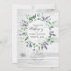 Watercolor leaf green silver dollar lavender rustic country barn wedding invitation with elegant typography designed to be quickly and easily customised to your event specifics. Ideal for any given theme or garden wedding. The QR code on the reverse directs to your wedding site where people can learn more and rsvp.