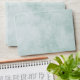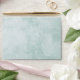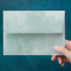 Elegant envelope featuring beautiful leaves pattern on the inside and sage green watercolor texture on the outside.